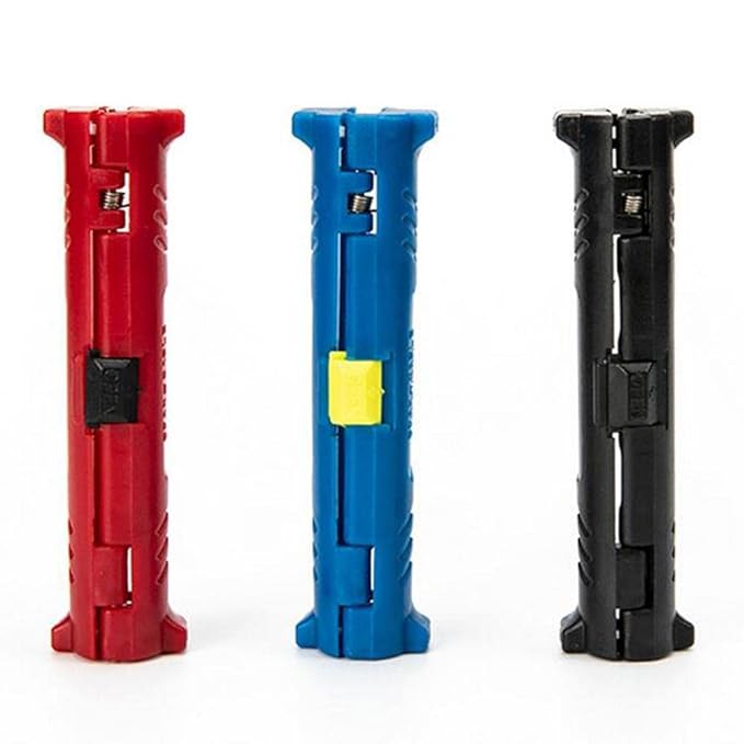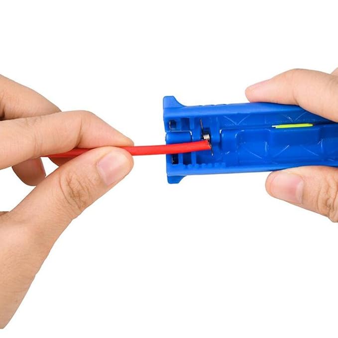 Praktičan i kompaktan skidač izolacije za kablove (plavi) namijenjen je za brzo i precizno skidanje izolacije bez oštećenja vodiča. Idealan je za električare, servisere, instalatere i kućne majstore. Alat se jednostavno koristi – dovoljno je provući kabal kroz otvor i povući, a ugrađena oštrica automatski skida izolaciju.