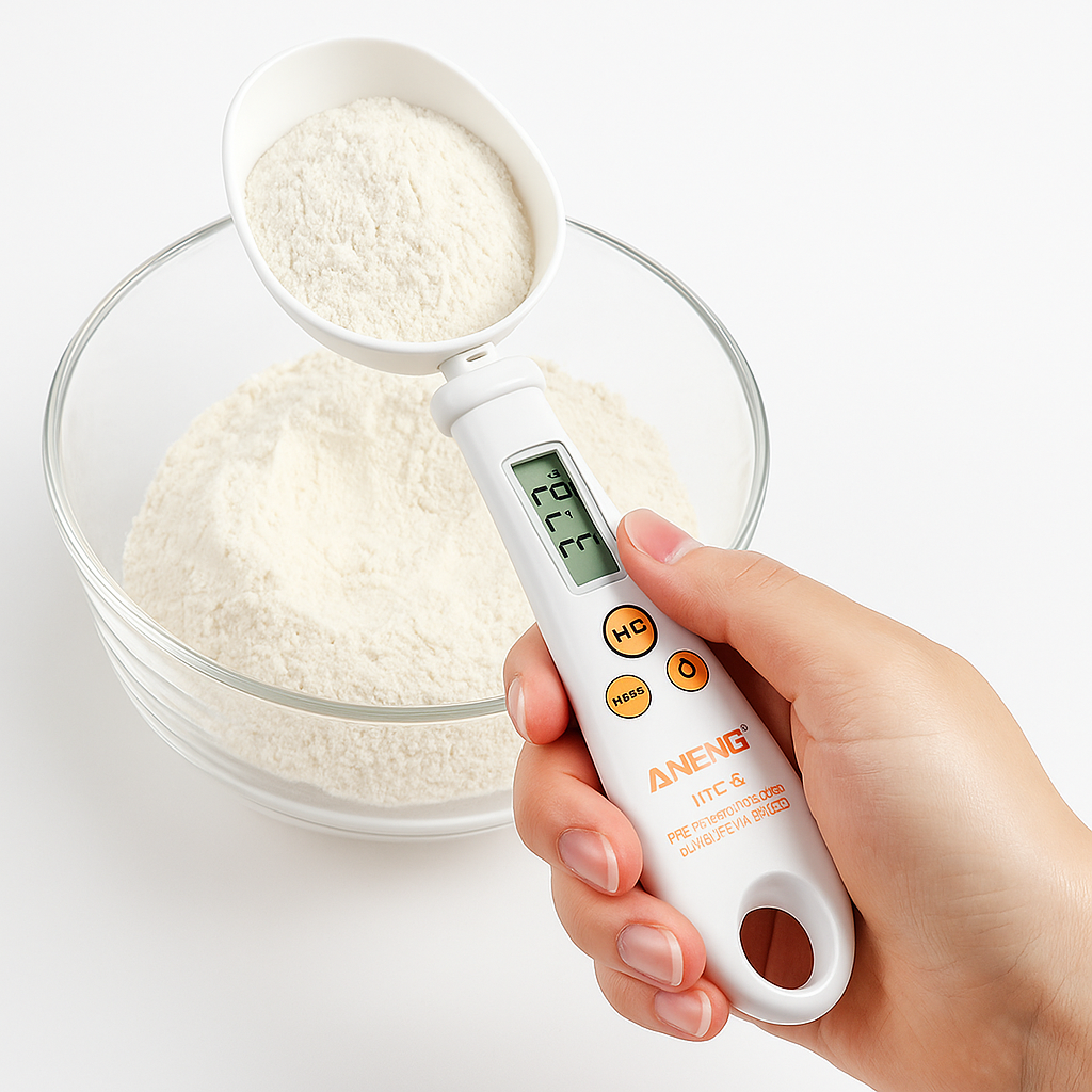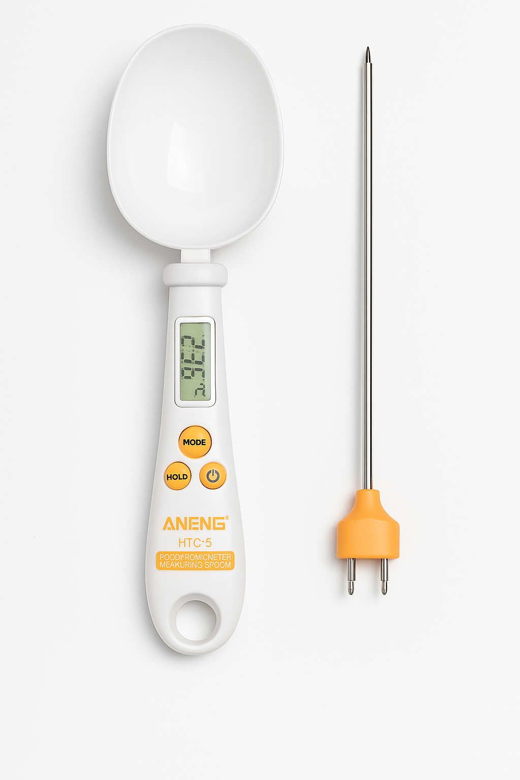 ANENG HTC-6 je digitalna kuhinjska kašika s ugrađenim termometrom i odvojivom sondom za precizno mjerenje temperature hrane, tečnosti i sastojaka.