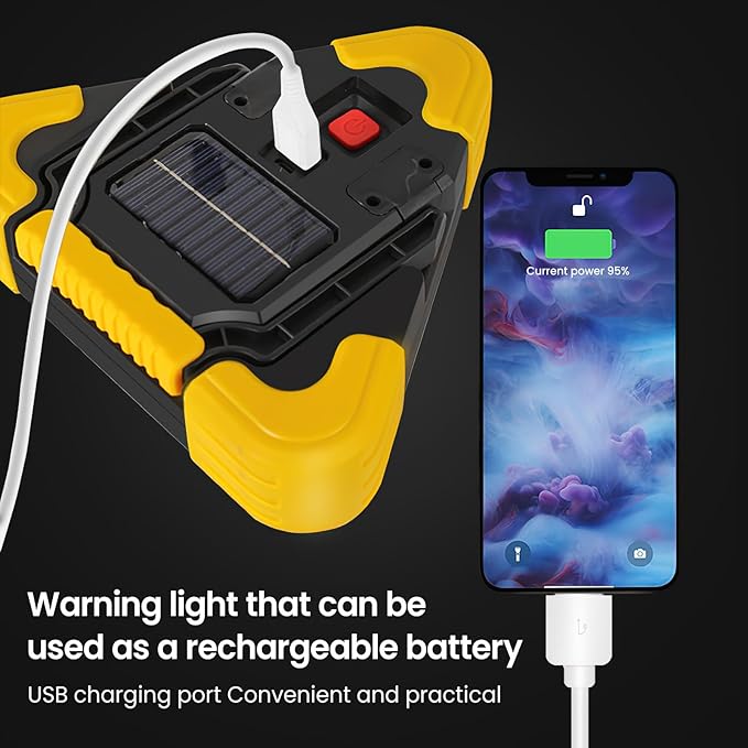 Solarna LED sigurnosna trokut lampa idealna je za hitne situacije na cesti, kvar vozila, rad u mraku ili kampiranje. Zahvaljujući jakim LED reflektorima i reflektivnom crvenom okviru, vidljiva je i na velikim udaljenostima, što značajno povećava sigurnost vozača.