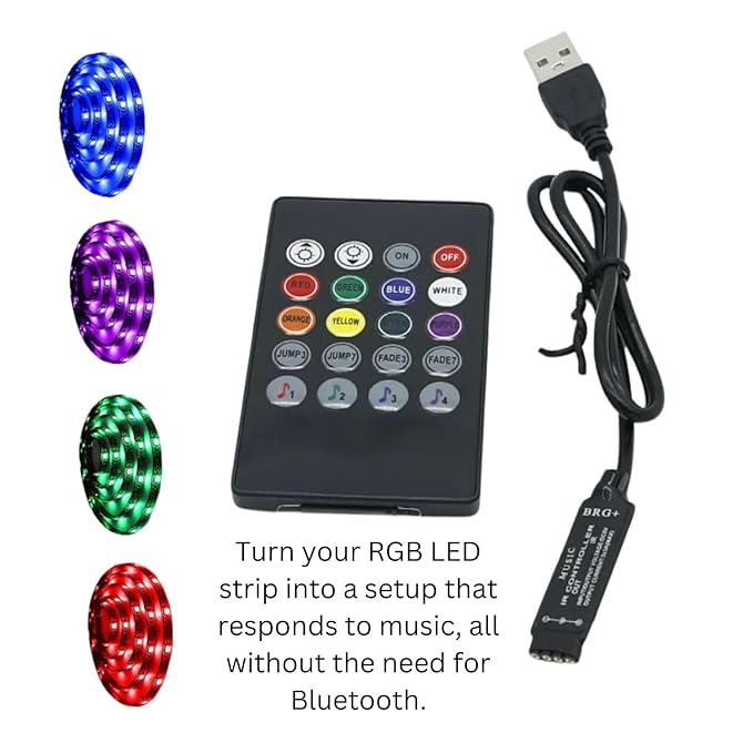 U zavisnosti od modula (IR 24 tipke ili muzički 20 tipki), možete birati klasične boje i efekte ili aktivirati mod u kojem traka reaguje na zvuk i ritam muzike. Daljinski omogućava promjenu boja, jačine svjetla, brzine efekata i izbora različitih svjetlosnih modova.