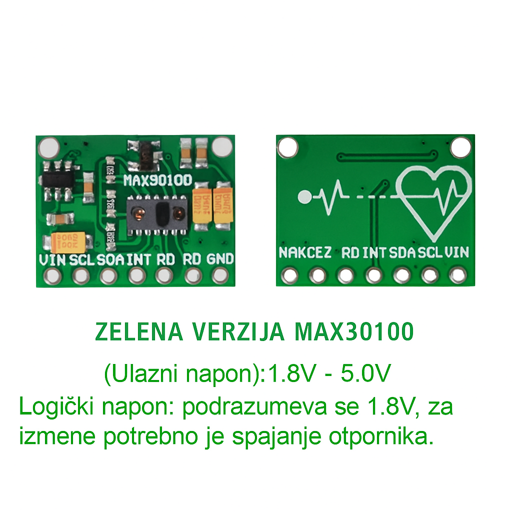 MAX30100 je kombinovani senzor otkucaja srca i nivoa kiseonika u krvi (SpO₂).