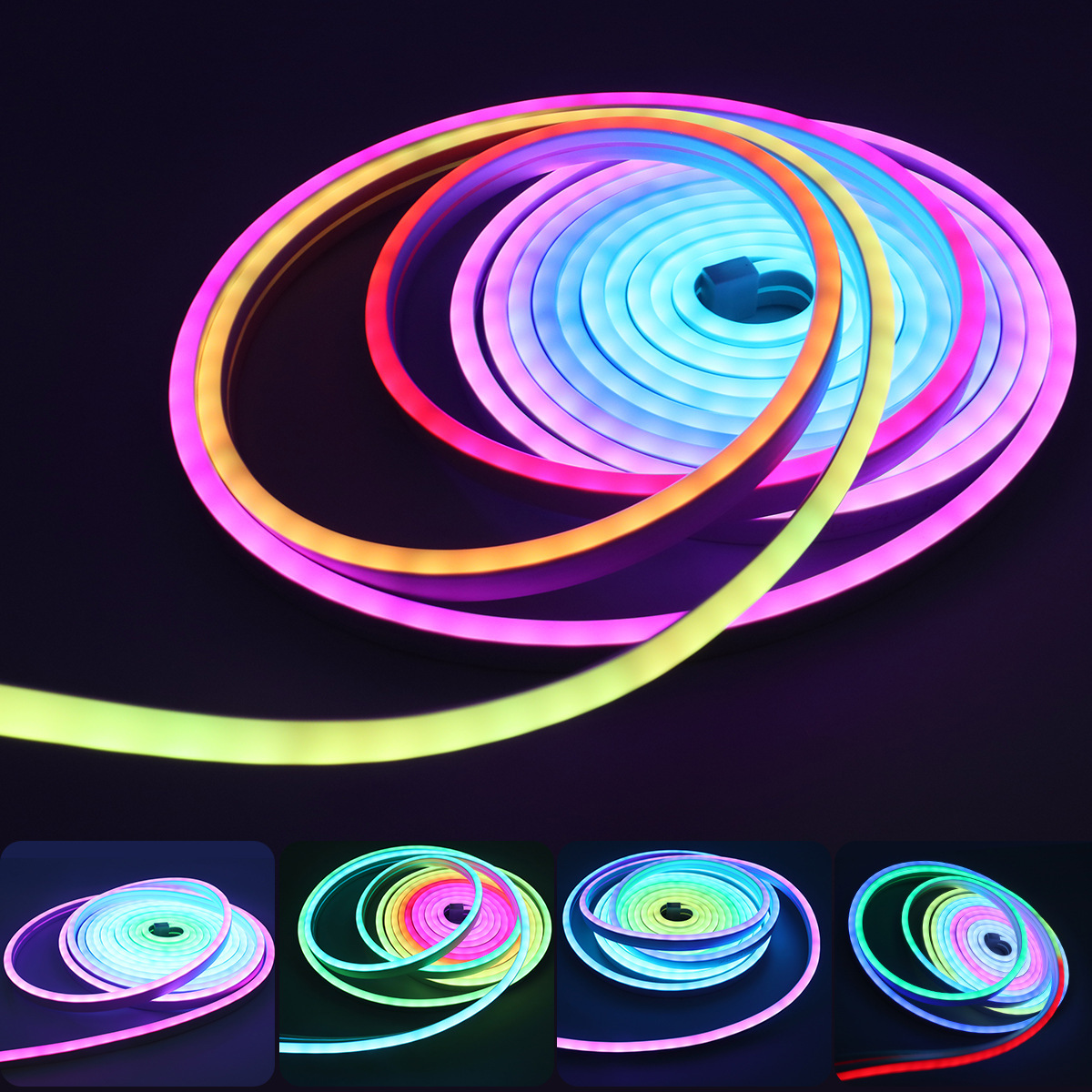 Ova RGBIC neon LED traka dužine 2 metra pruža snažan, ravnomjeran i ultra-gladak ambijentalni sjaj zahvaljujući naprednoj RGBIC tehnologiji (svaka sekcija može svijetliti različitom bojom). Idealna je za dekoraciju zidova, soba, terasa, šankova, TV pozadina, automobila ili poslovnih prostora.