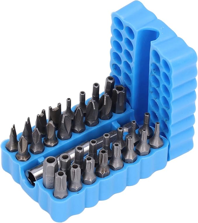Univerzalni set odvijačkih bitova – 33 komada predstavlja praktičan komplet za majstore, auto-servise, električare i kućnu upotrebu. Bitovi su izrađeni od kvalitetnog čelika otpornog na trošenje, a dolaze u kompaktnoj plavoj držalici koja omogućava pregledno i uredno skladištenje.