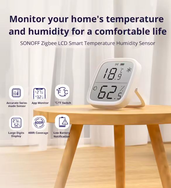Ovaj senzor u realnom vremenu prikazuje temperaturu i vlažnost zraka, te automatski prenosi podatke u Home Assistant, Sonoff iHost, NSPanel Pro ili druge Zigbee 3.0 hubove.